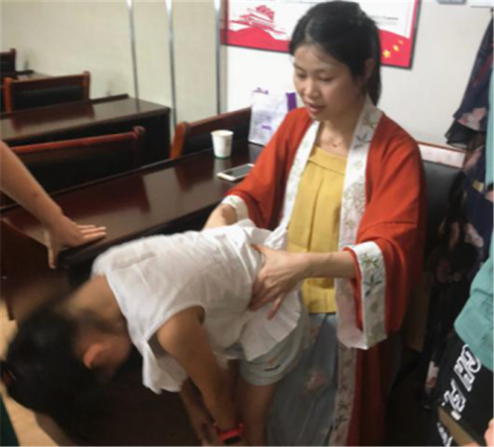 针灸推拿科副主任中医师潘胜莲的刮痧课,让孩子们摇身一变成为了小小“中医师”。经过认真的听课后,大家拿起刮痧板有模有样地在家长身上做起练习,在医生的指导下,很多人都掌握了原理,成功刮出了“痧”。