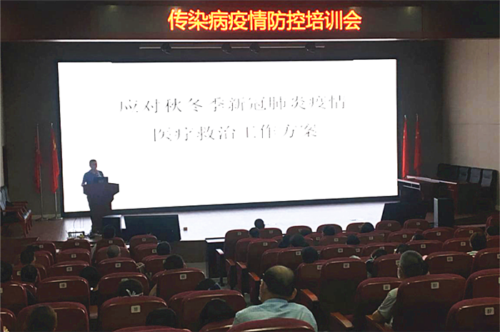 为进一步做好重大传染病的疫情防控救治工作,根据国务院印发的《关于应对秋冬季新冠肺炎疫情医疗救治工作方案通知》的指导意见,加强院内职工培训,8月6日下午,医务科、感染管理科、保健科共同组织召开传染病疫情防控培训会,医院各职能中层、临床科室主任、护士长等100余人通过现场及线上形式参加会议。会议由医务科副科长张爱国主持。