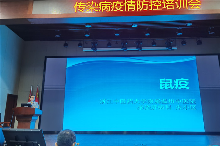 最后,疫情防控领导小组诊治专家组副组长、感染科主任朱小区对仍活跃于夏季的重大传染病登革热以及鼠疫进行了专项培训,阐述了疾病的基本知识,就传染源、传播途径、易感人群等及如何诊断、治疗、预防等方面做了深入浅出的解说。