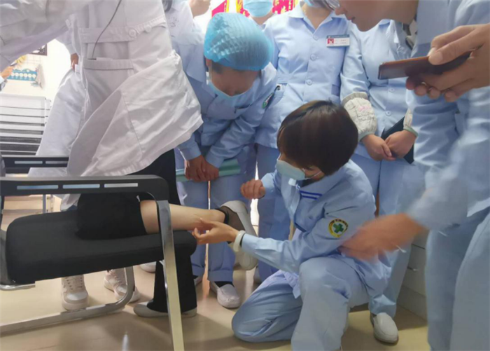 见识到腕踝针的神奇之处,格二院护理同仁们也很想学习这项新技术,于是伊护士长给全院护士认真讲解了腕踝针的理论知识,并手把手地指导护理人员实际操作学习腕踝针技术,同时还示范了耳穴贴压、贴敷疗法、便秘推拿等中医护理技术。