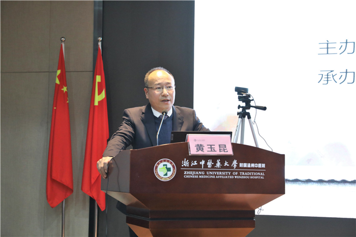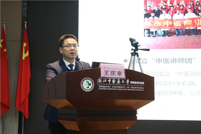 浙江省中医药学会副会长、温州市中医药学会会长、香蕉视频 党委书记王庆来致欢迎词