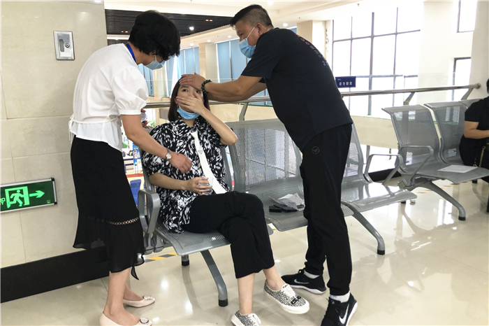 10月8日上午11点左右,就在各项工作都如预期一样有条不紊开展的时候,体检人员在检测视力时,发现一位姑娘面色苍白、颤颤巍巍,她立刻起身帮扶,询问对方是否不适。