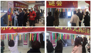 分诊护士们把一条条五彩灯谜悬有序的挂起来,又把丰富的奖品堆摆在桌面上,此时活动正式开始!大家迫不及待地想取谜面去答题。今天的游戏规则是答对题就获得幸运转盘一次,转到哪个奖品的形容词就获得相对应的奖品。