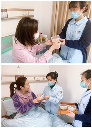 正所谓“北元宵、南汤圆”,在我们南方汤圆可谓是元宵节头牌小吃了。汤圆,亦有“团圆”之意,象征着家人团团圆圆,和睦幸福,寄托了对未来生活的美好愿望。在应海琼护士长的带领下,我们为每一位住院患者都送上了精心准备的五彩果蔬的汤圆。孕期准妈妈们食欲较差,这份五彩的果蔬汤圆,不仅在色彩上勾起了准妈妈们的食欲,而且酸酸甜甜的口感更是取得了这些准妈妈们的喜爱。