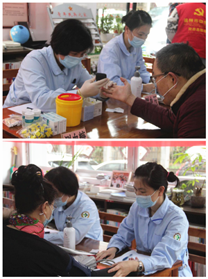 为社区前来咨询的患者免费测量血压、血糖。