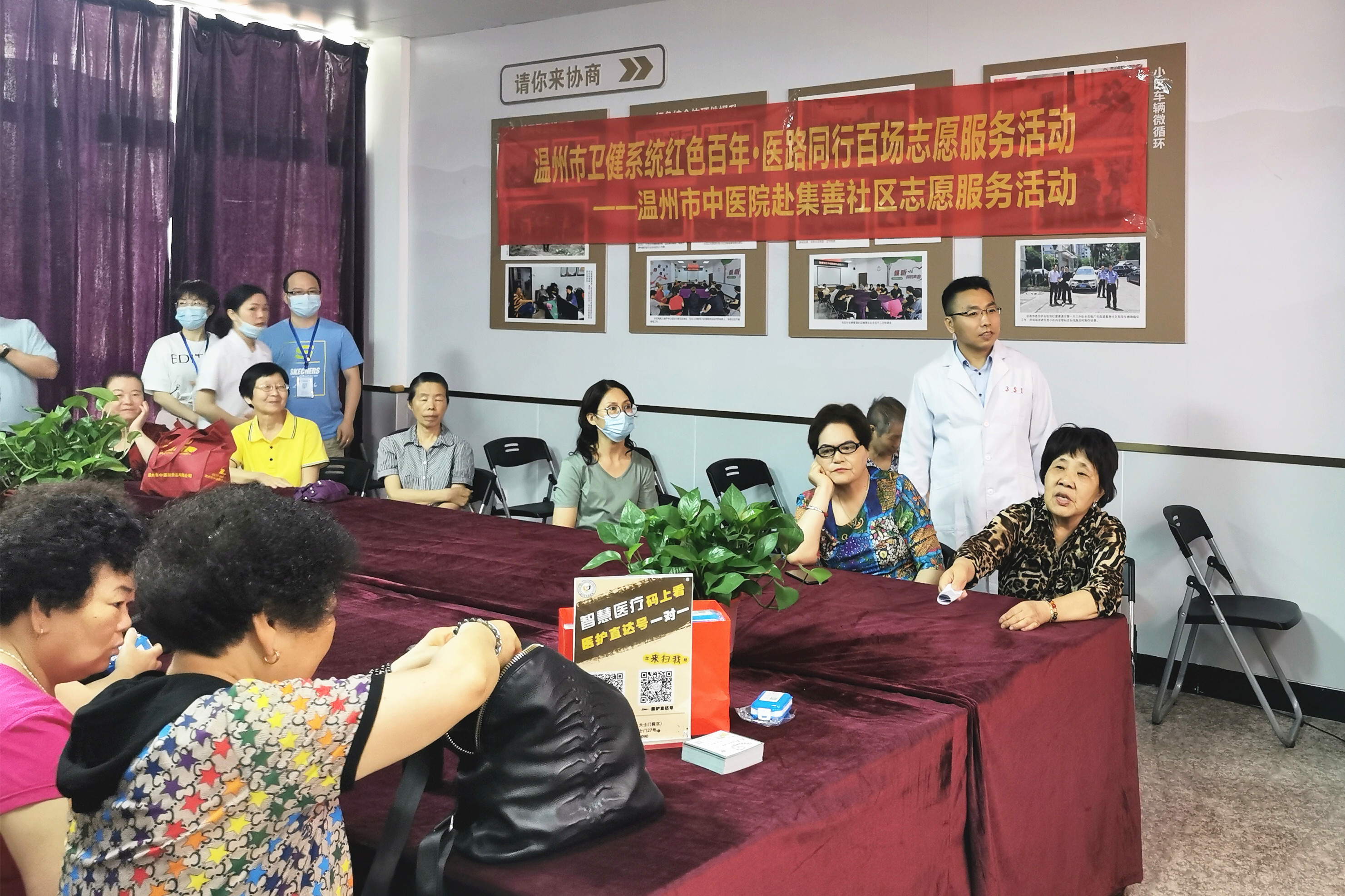 以温州市卫健系统为庆祝中国共产党成立100周年和在党史学习教育中开展“我为群众办实事”活动要求,香蕉视频 大士门党支部开展的市卫健系统“红色百年·医路同行”志愿服务活动于5月13日走进了集善社区。