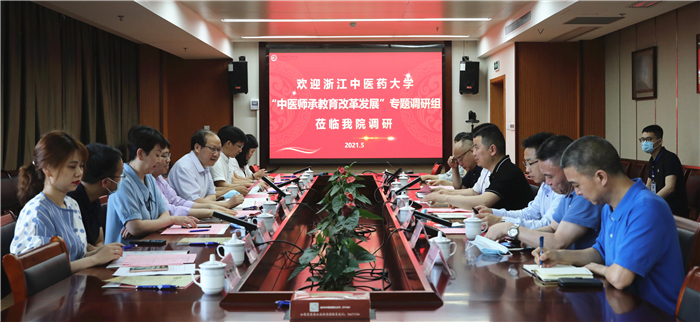 5月27日下午,浙江中医药大学调研组来到香蕉视频 六虹桥院区开展浙江省中医师承改革发展专题调研工作。此次调研活动由浙江中医药大学党委书记黄文秀带队。