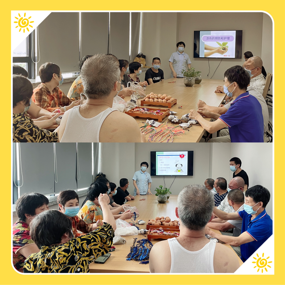 最后,护士长以ppt的形式向患者及家属们宣教烫伤后的预防和护理,让大家不仅能感受到过节的气氛,还能收获一些烫伤应急小知识,在其乐融融中奏响了康复一科医患端午情的序曲。