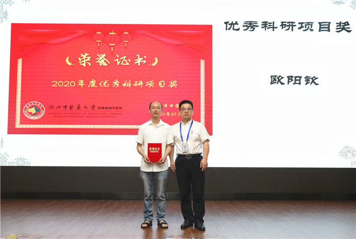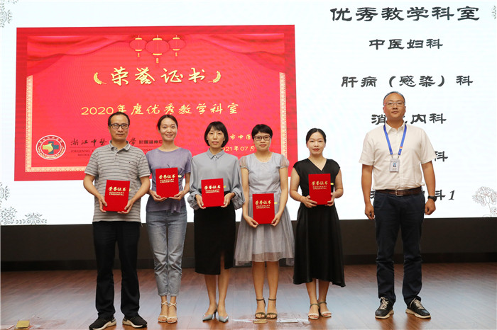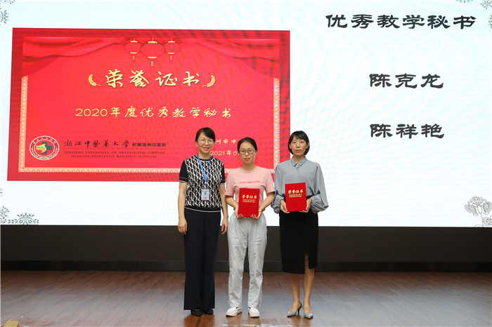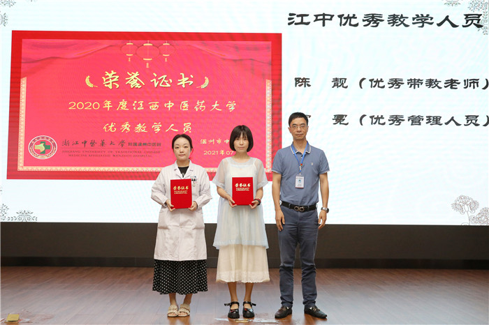 会议最后,副院长赵永强、纪委书记张伊凡宣读2020年度科教奖励名单。医院领导班子上台为获奖人员及集体颁发科教奖励。