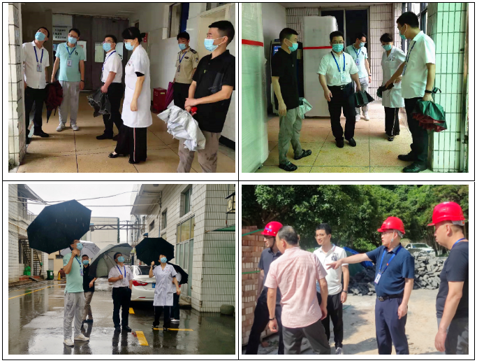 王庆来书记还带队仔细巡查医院重点场所,对医院防汛防台物资、大楼楼顶、窗户阳台、低洼地带、地下室、仓库、发电机房等重点场所进行全面检查和整顿,对排查中发现的隐患立即处置,并确保应急状态下应急设备能正常运作,扎实做好防汛防台工作,确保抗台防汛工作万无一失。他还叮嘱各部门要认真落实好上级主管部门对抗台防汛工作的具体要求,确保措施到位、责任到人,确保院内患者及职工生命安全和医院重要设施、设备安全,维护正常医疗秩序。