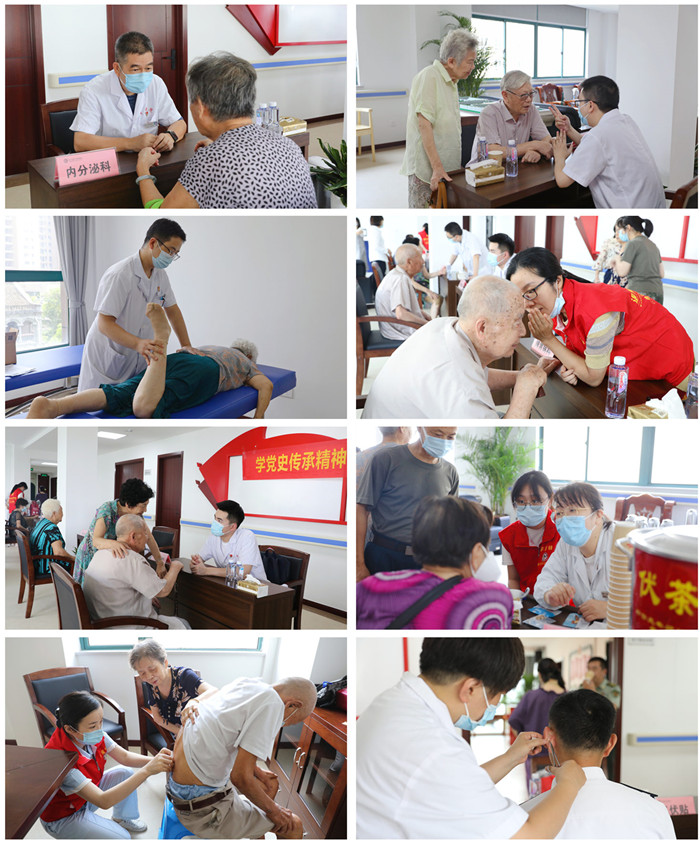 在活动现场,内分泌科、神经内科、骨伤科、消化内科、针灸推拿科、药剂科、中医护理门诊等科室专家组成的医疗护理团队认真为每一位老人进行中医药医疗服务。专家不仅针对不同病症和个体差异提出合理的诊疗建议和治疗方案,还带去了夏季最热门的养生项目冬病夏治“三伏贴”和耳穴贴压等中医适宜技术。中药师也为老人们准备了花茶,并围绕老年常见综合征以及中医养生等话题为老人们开展药食同源健康知识讲解。