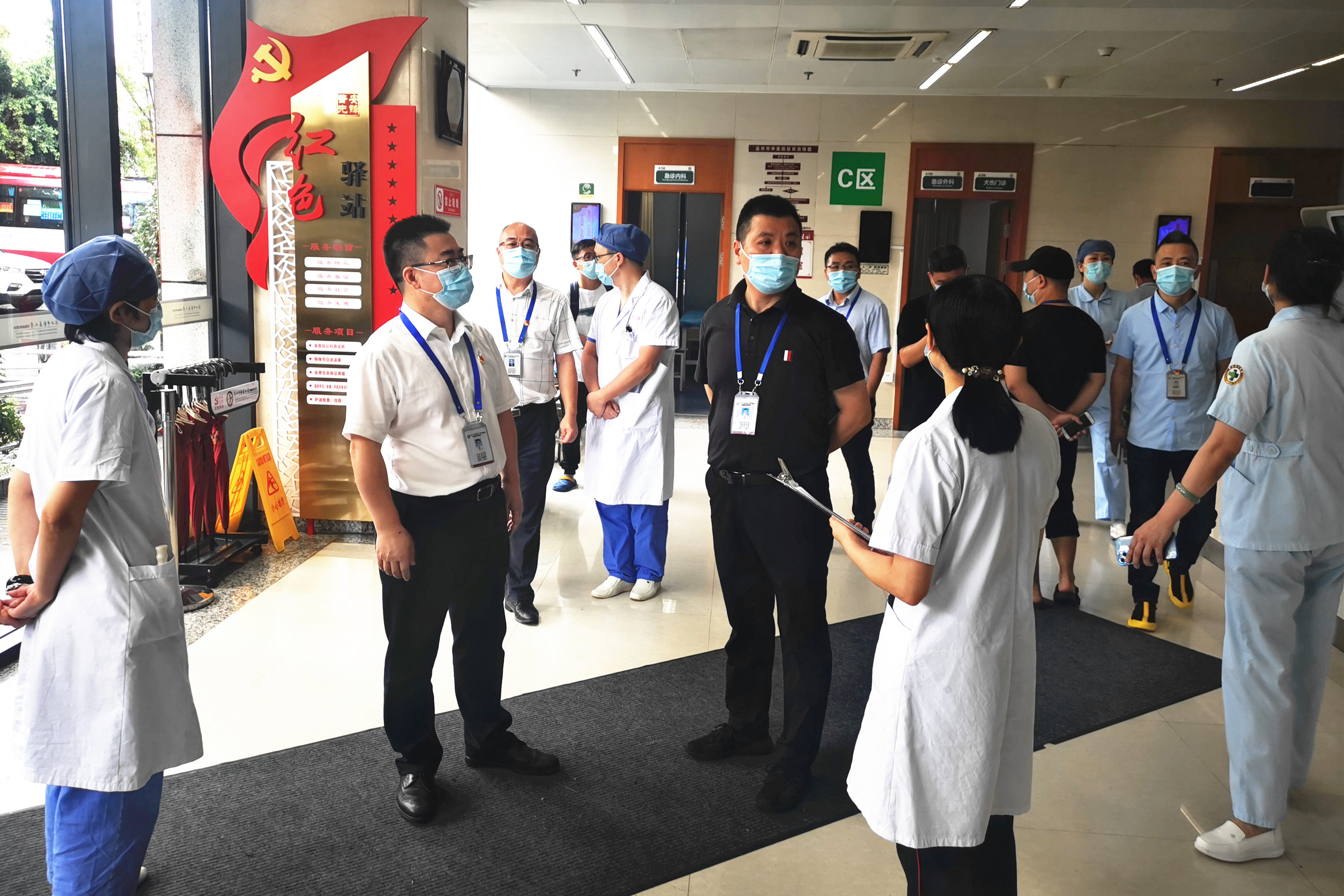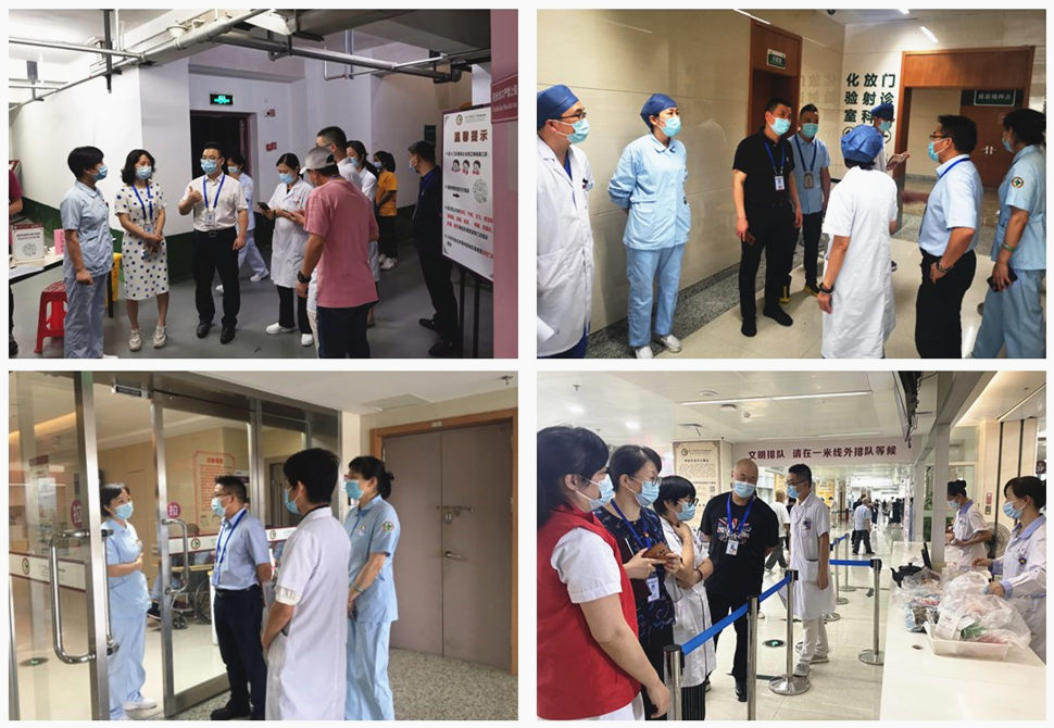 各领导班子每日分多线带领医务科、护理部、院感科、保健科、门诊部、总务科、保卫科、监察室等职能科室,全面排查疫情防控各项措施落实,尤其对医院“三道门”、预检分诊、发热门诊、核酸采样点、方舱CT、急诊、检验科及门诊病房等区域开展细致检查。大家在督导检查中,细心留意,详细询问,认真梳理每一个环节存在的风险隐患,并与各重点科室负责人面对面交流,问题现场解决,切实保障疫情防控制度落实,做到“防患于未然”。