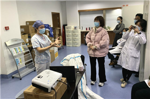 医务人员学会防护服的正确穿脱,也非常重要。姜圆圆进行医用防护服穿脱的正确演示,同样,金菲菲护士长在旁讲解穿脱过程中的注意事项和细节要领,并按照温州市中医院的防护用品穿脱考核标准的要求,对科室同事进行考核评分。