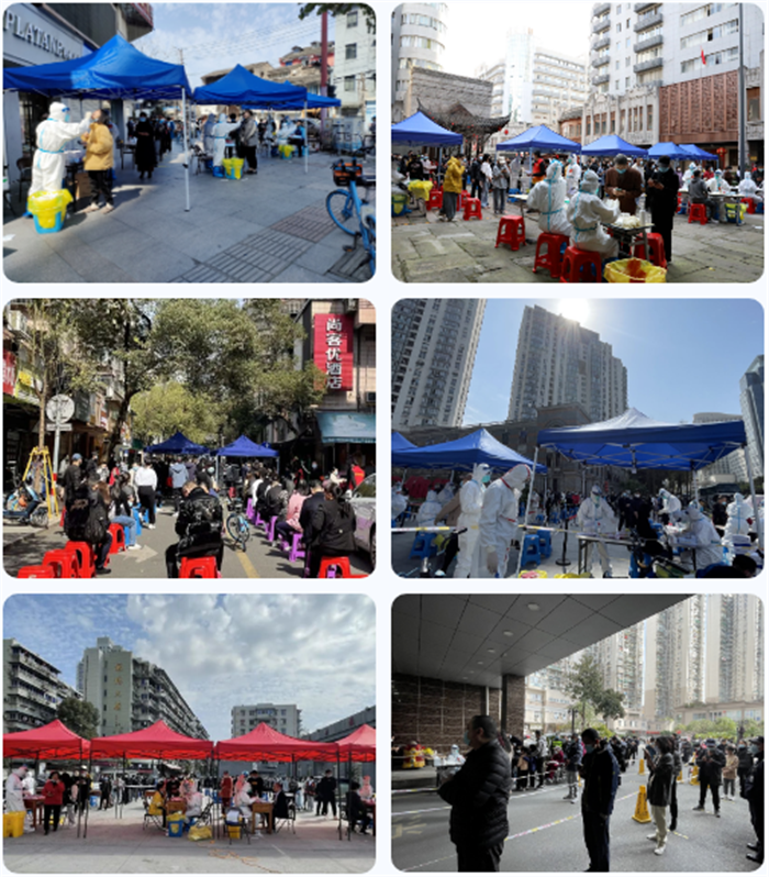 早上五六点,105名医护人员按组分工在广信大厦、新国光、禅街商厦等核酸检测点开展工作,截至中午,一共完成了13805人次的核酸采集。