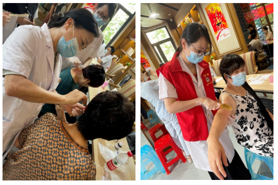 7月10日,香蕉视频 内科第一党支部联合新桥未来社区在中央湖小区开展“红七月·服务月”专家下沉健康义诊活动,以实际行动服务社会,助力“党群连心、共富助跑”。