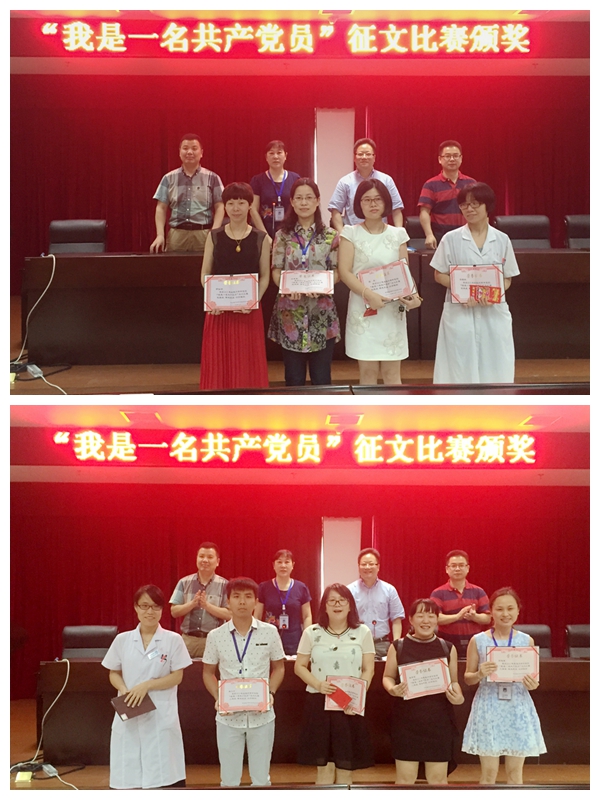 此次活动,共收到各党支部推荐的征文50余篇,文章内容真实、思想深刻、语言流畅。有的写自己作为一名党员,如何立足本职岗位,做好服务奉献;有的结合自身经历对如何做一名合格的共产党员做出了深刻思考。党员大会上,黄建平等领导为此次征文比赛的获奖党员颁奖(获奖名单:一等奖张宣义;二等奖林芳芬、张霄霄;三等奖麻文士、翁超寅、傅林平;优胜奖吴春春、张岚、黄香妹、余维微 、伊仙琼)。通过征文活动,全体党员干部不仅在自身思想境界上得到了进一步提升,为更好地立足本职岗位、用实际行动服务群众夯实了基础。