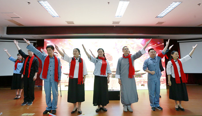 水心景山院区党支部选送的《生的伟大,死的光荣》完美地演绎了一位满腔热血的革命者刘胡兰被敌人逮捕后从容面对铡刀的场景,表现出共产党员坚贞不屈的革命气节;