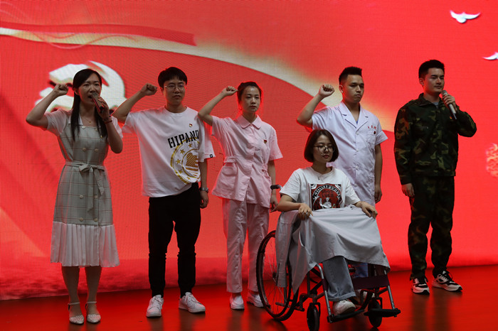 医技党支部选送的《映山红》讲述了小英雄潘冬子在残酷的斗争中不断磨练自己最终成为一名红军小战士的故事;