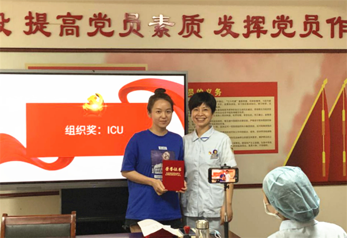8月24日下午,门诊党支部举行了“听党课写感言”活动颁奖仪式,香蕉视频 院长朱文宗同志及支部各支委对获奖党员进行颁奖。蔡晓丹同志获得一等奖,朱婧、刘三海同志获得二等奖,赵东瑞、王洁、谢敏同志获得三等奖,叶必宏等七名同志获得优胜奖,ICU党小组获得组织奖。