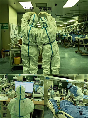 也有部分队员被分配到重症监护室,是疫情战斗最危险的地方,是白衣战士义无反顾的战“疫”前沿地带。重症监护室里的工作量非常大,气管切开、气管插管、吸痰、CRRT……他们要在数不尽的仪器里忙碌。密不透风的防护装备,让他们视线模糊,缺氧让他们头痛欲裂,谁也不知道下一秒患者会出现什么样的状况。可是没有人退缩,他们不分彼此,团结协作,共同战疫。