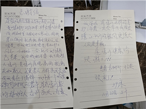 39床的王奶奶给队员们留下了深刻的印象。匆匆收拾行李来院的奶奶没有带太多的食物,但是常年胃病的她只要一饥饿就会胃疼。三餐定时的生活让她入院头几天胃一直隐隐作痛,坐立不安。护士知道了便主动提出带驻点发的能量包送给王奶奶。由于新疆疫情影响物资来之不易,队员们也是常常三餐不定时,为了保证体力基本都是靠能量包补给。当护士义无反顾地分享自己的能量包时,王奶奶激动地写了一封感谢信。虽然信件不能拿出病房,但队员们特意拍照纪念。